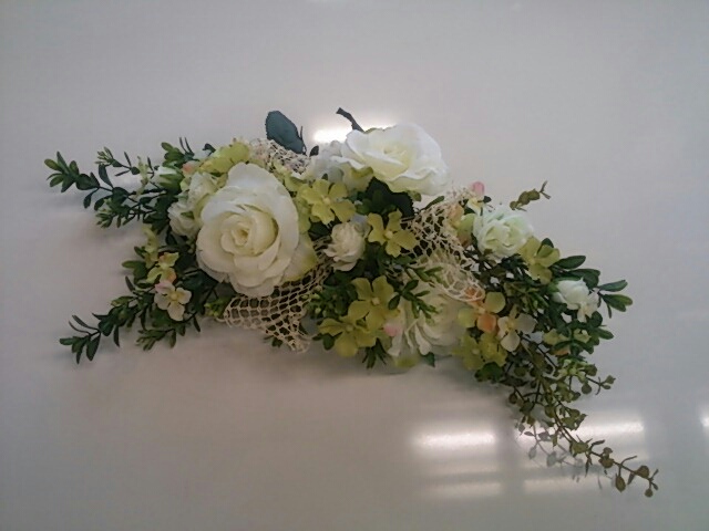 スワッグとは、リースのような土台なしに、お花やグリーンなどだけで、束ねたアレンジです。