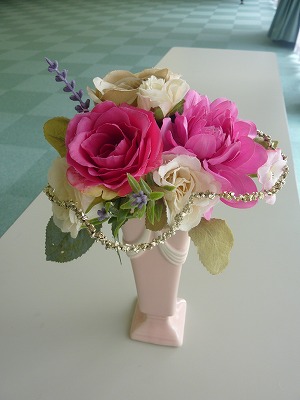 小さいアレンジなので、ちょっとしたスペースに飾れますよ♪