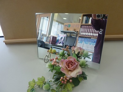 ミラーに添えて飾るので、季節に合わせて好きなお花にチェンジすることも出来ます。