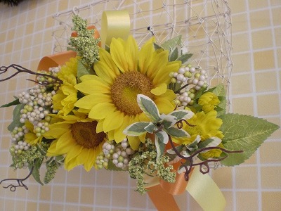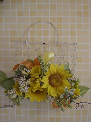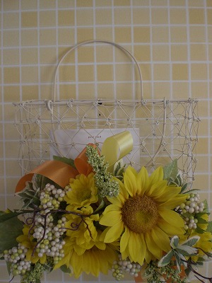 ひまわりのワイヤーカゴです。