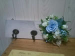 ブルーのポインセチアをアクセントに、白+シルバー、雪のイメージのアレンジ。
